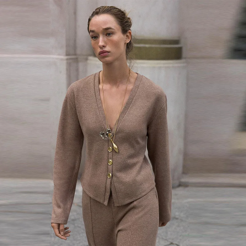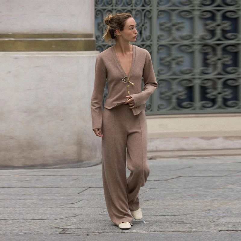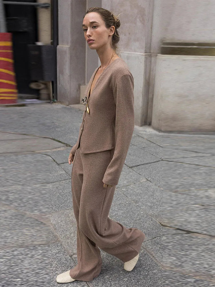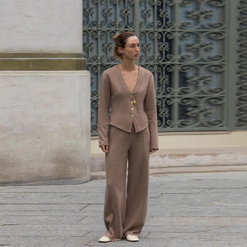 Model Number: Knitted Casual Cardigan Wide Leg Pants Suits