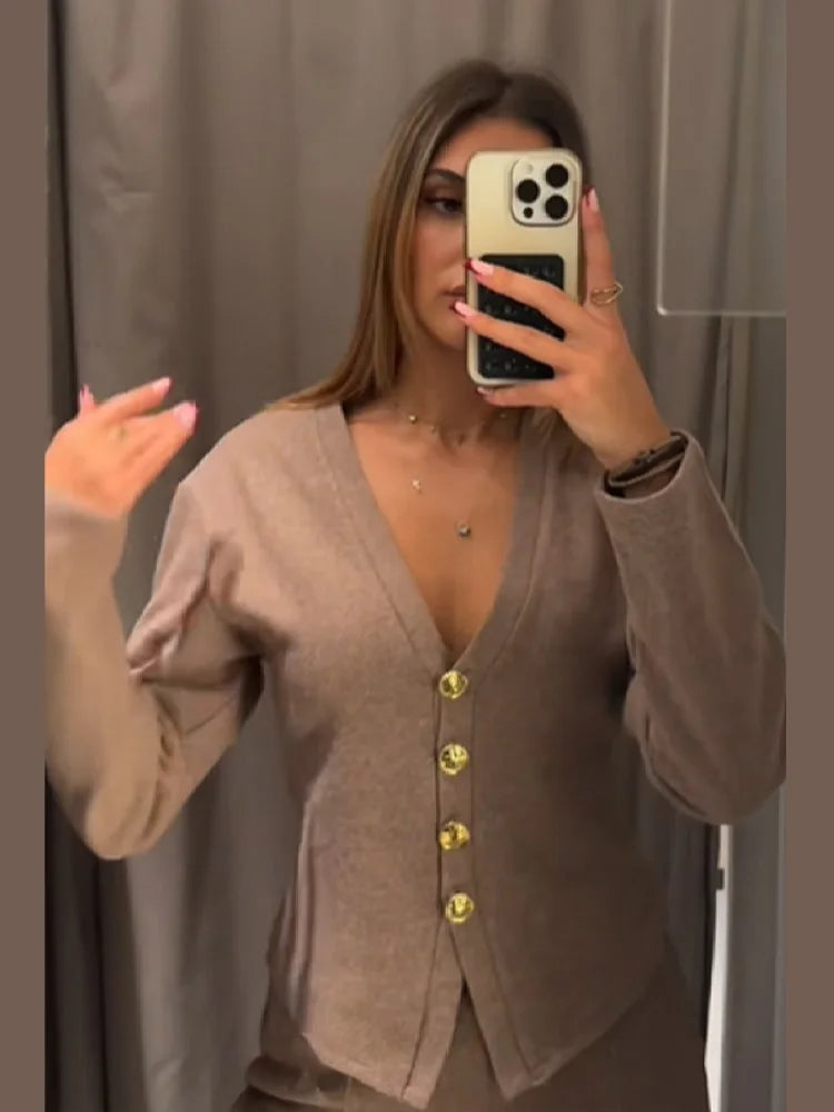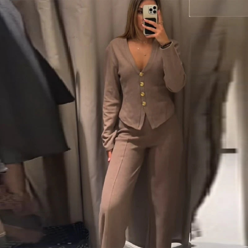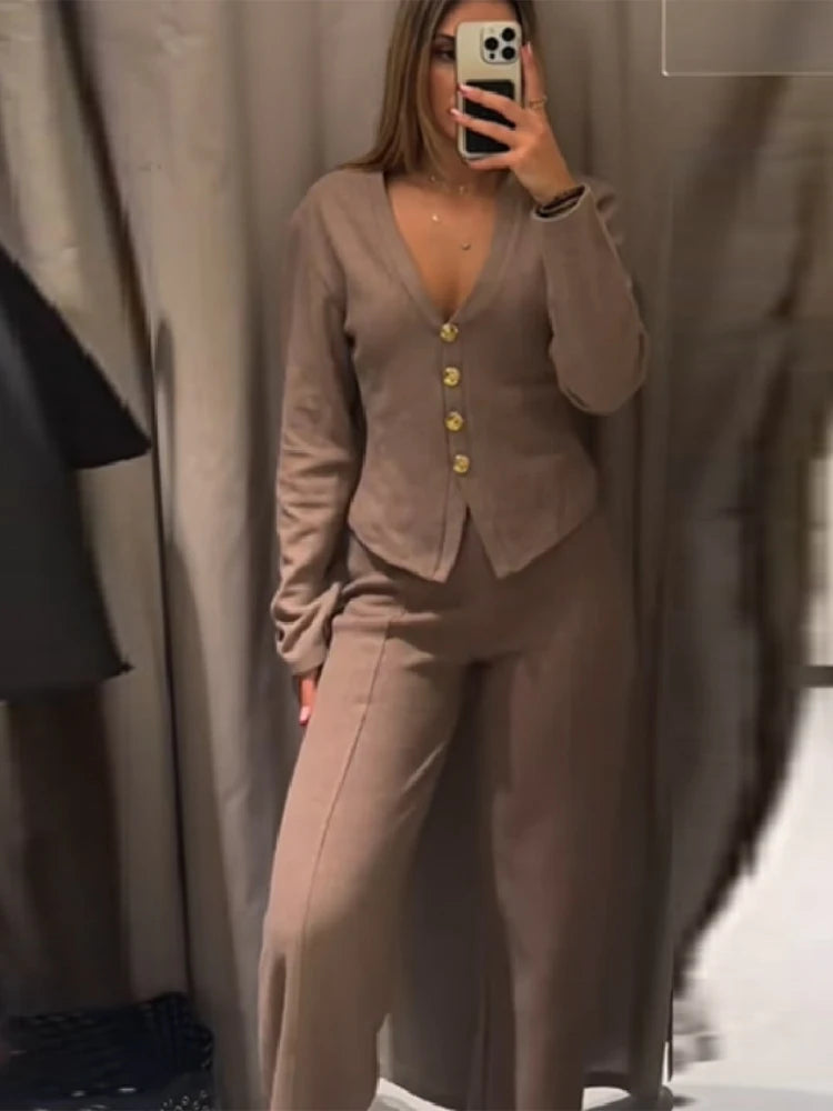 Model Number: Knitted Casual Cardigan Wide Leg Pants Suits