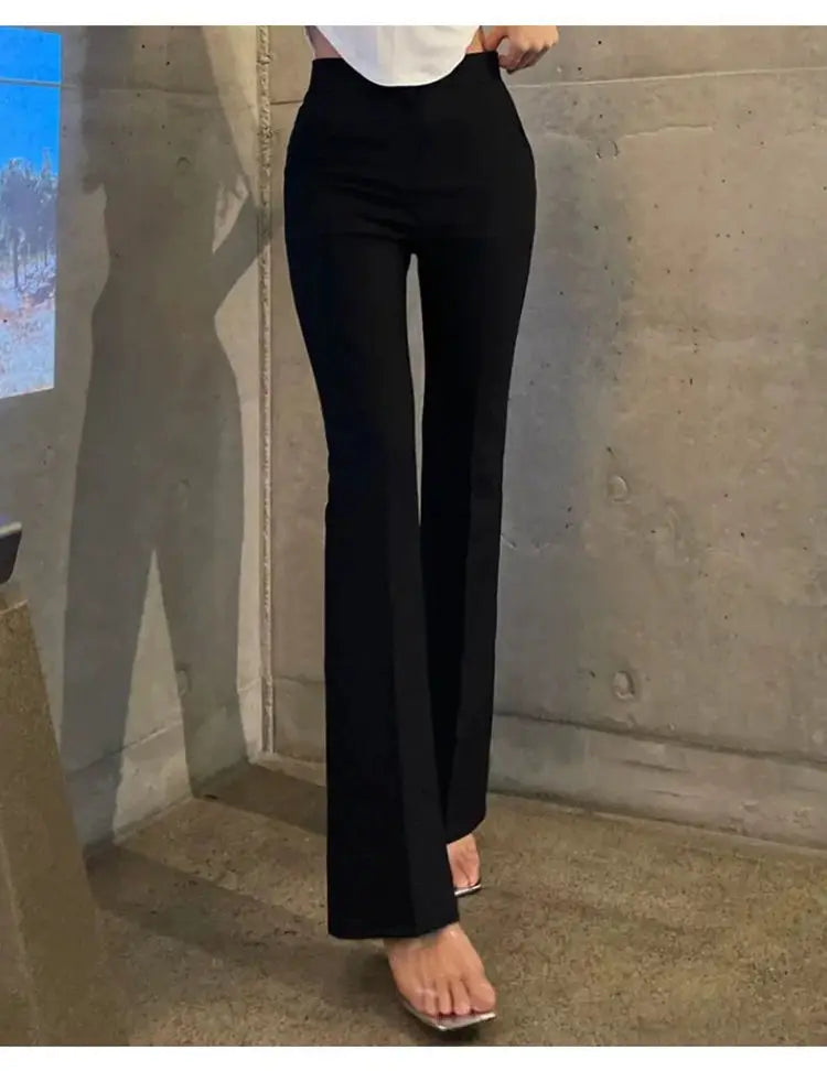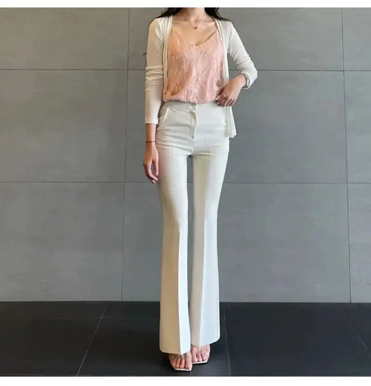 Korean Spring New Slim Fit High Waist Fashionable Commuting Versatile Temperament Slightly Flare Casual Trousers for Women