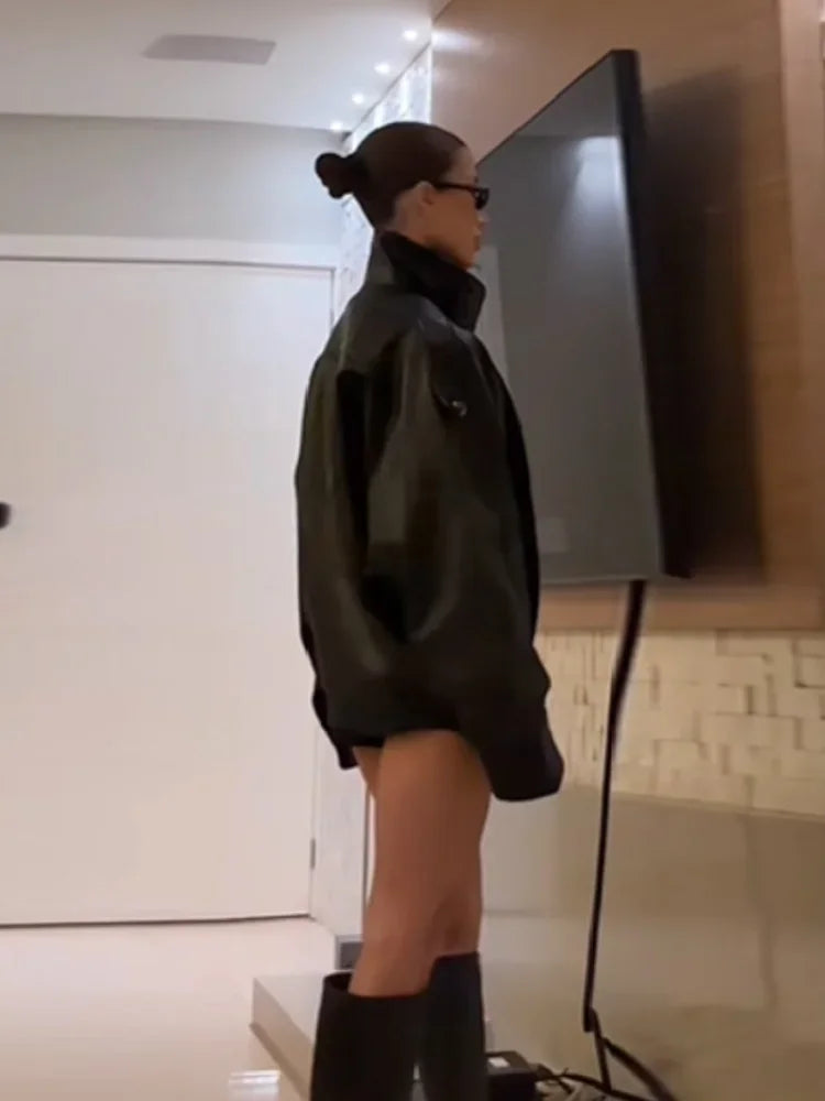 Stylish Pu Leather Jackets Stand-collar Loose Long Sleeve Coat Cool Casual Chic Versatile Outerwear New Autumn Women Streetwear