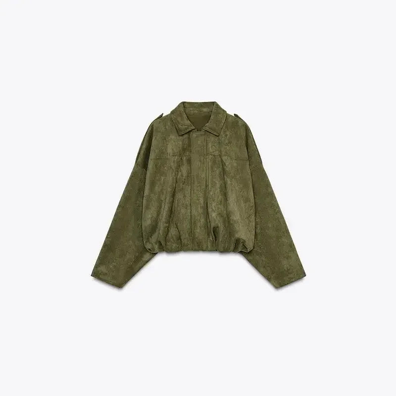 Vintage Lapel Solid Zipper Short Jacket Women Fashion Suede Cropped Casual Long Sleeve Coat Woman New Commuter Outerwears
