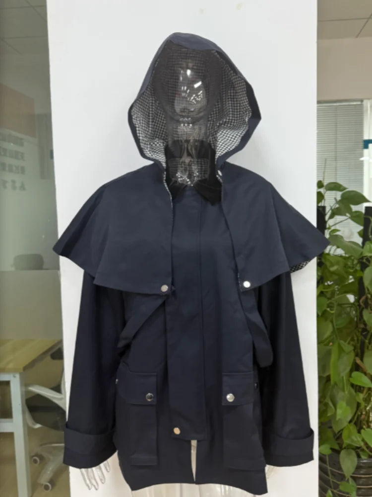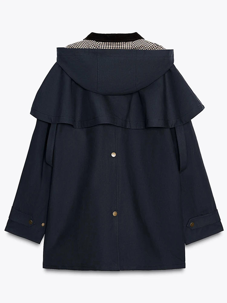 Women's Casual Cloak Short Jackets Solid Fashion Design Sense Style Detachable Hat Coats 2025 New Lady Autumn Streetwear