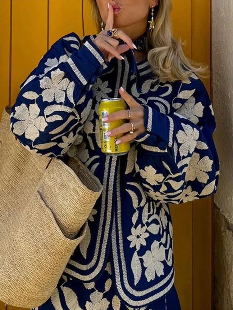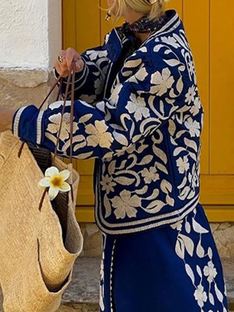 Model Number: Women'S Retro Open Front Printed Embroidered Jacket